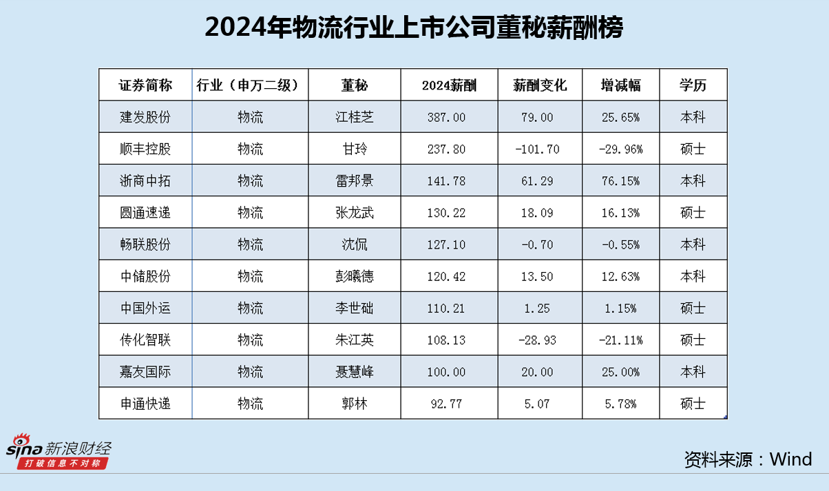 行业内,中储股份2024年营收同比下降6.13%,归母净利润同比大降48.77%,扣非净利润则直接转负,而公司董秘彭曦德年内仍涨薪13.5万至120.42万,位居业内第六。