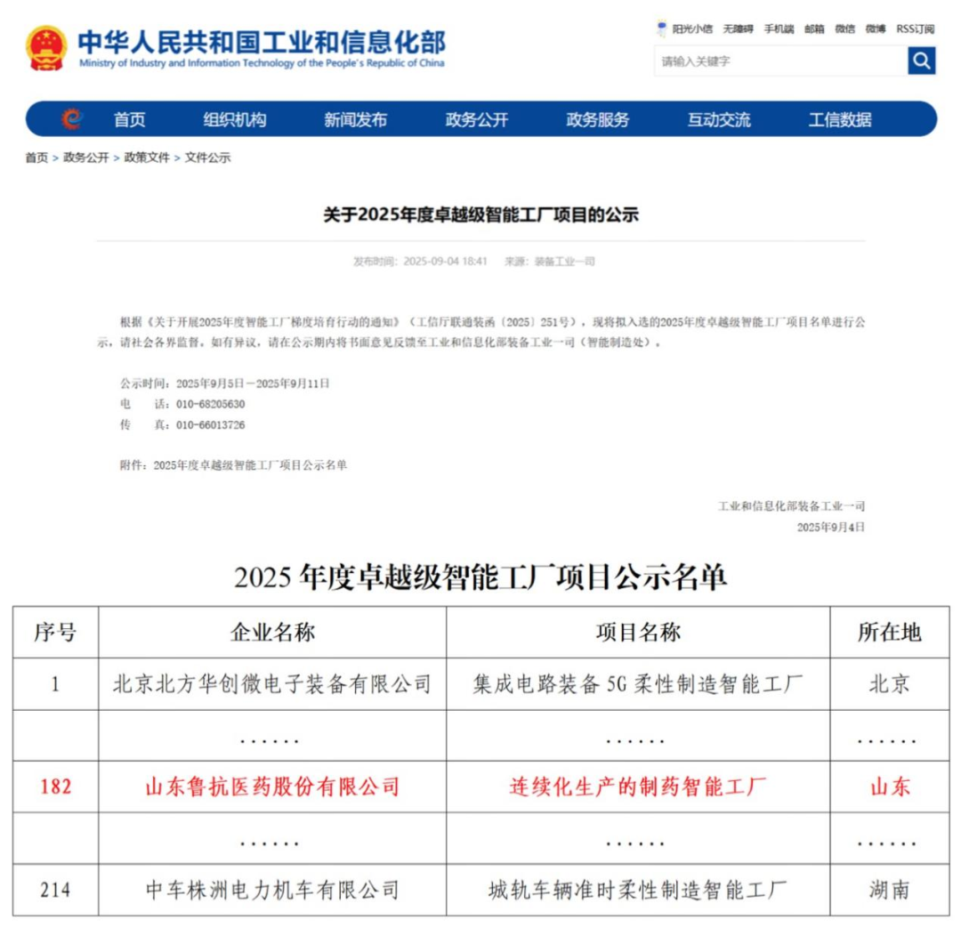 近日,工业和信息化部正式发布《关于2025年度卓越级智能工厂项目的公示》,鲁抗医药凭借“连续化生产的制药智能工厂”项目成功入选2025年度卓越级智能工厂项目名单。本次公示的国家第二批卓越级智能工厂共274家,其中医药行业11家,山东省27家。
