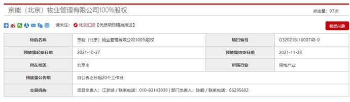 10月25日,京能置业发布公告称,公司拟在北京产权交易所以公开挂牌方式转让全资子公司京能物业100%股权及相应债权。
