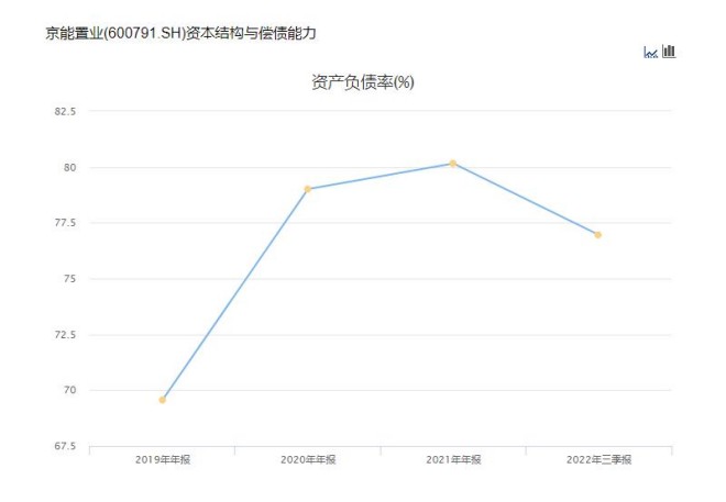 近年来,京能置业通过银行借款、债券融资等多种方式筹集资金。2019年至2022年9月30日,京能置业各期资产负债率分别为69.56%、79.01%、80.16%和76.96%,存在一定的偿债压力。