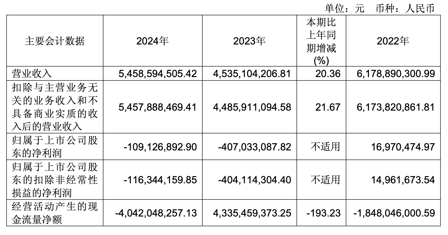 2024年,公司实现营收为54.59亿元,同比增长20.36%;归母净利润为-1.09亿元,而上年同期为-4.07亿元。