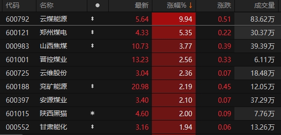 1月3日早盘,申万一级行业板块中,煤炭板块快速拉升。截至9时58分,云煤能源涨停。郑州煤电涨超5%,山西焦煤涨逾3%,晋控煤业、云维股份、兖矿能源等跟涨。