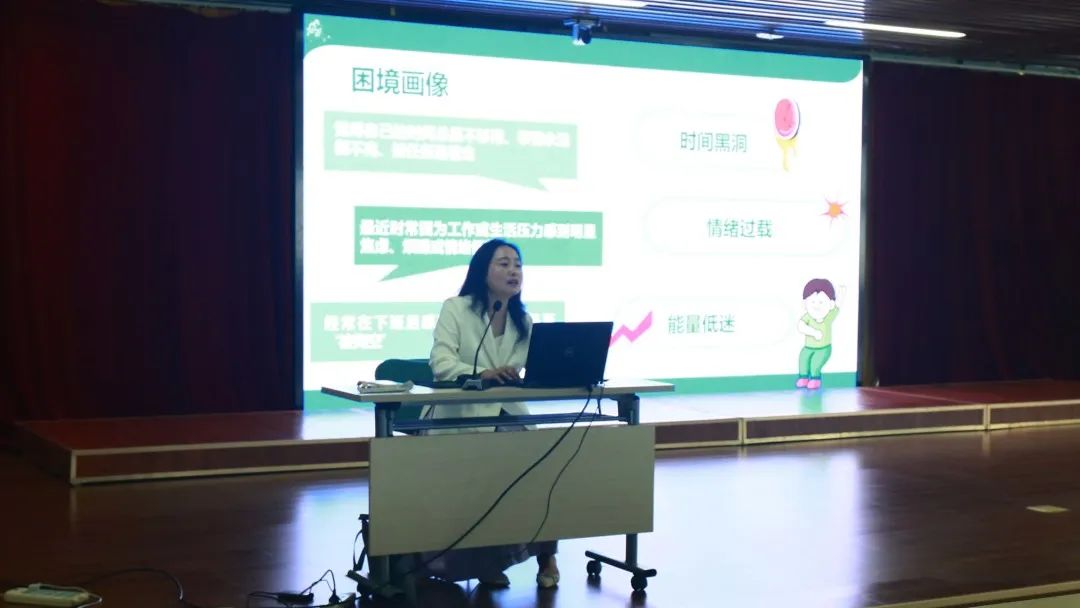 本次培训特邀昆明工业职业技术学院党委办公室主任、高级职业生涯规划师梅晓芳副教授担任主讲。她以“成长型思维”为切入点,结合心理学与管理学工具,通过“生理桥技术”“情绪ABC理论”“认知卸载流程图”等实用方法,帮助学员构建高效能工作模式。