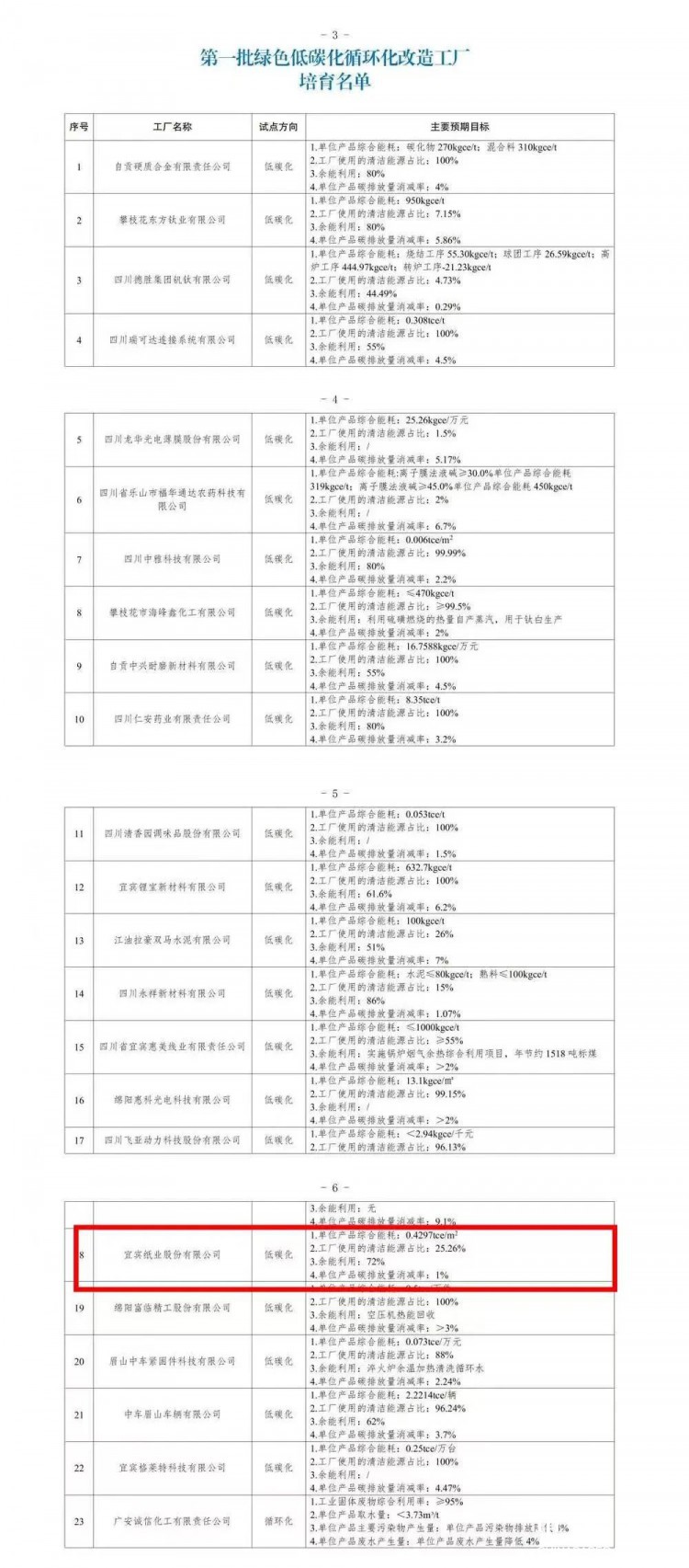 4月17日,四川省经济和信息化厅印发《关于公布第一批绿色低碳化循环化改造园区(工厂)培育名单及主要预期目标的通知》(以下简称《通知》),公布我省第一批绿色低碳化循环化改造园区(工厂)培育名单,宜宾纸业股份有限公司成功入围。