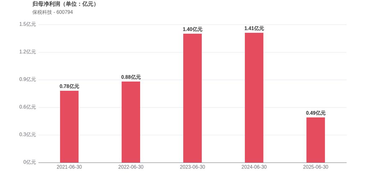 在2025年上半年,保税科技的经营业绩出现明显下滑,实现营业收入4.20亿元,同比下滑22.13%;实现归母净利润0.49亿元,同比下滑65.45%。