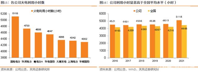 火电机组主要布局在东部沿海地区、大型煤电基地和外送电通道。公司在华东、华南、华中等经济发达地区的火电权益装机占总权益装机比例为67.06%。随着公司火电机组区位布局的优化,公司火电机组2021年利用小时达5118小时,超出全国平均利用小时670小时。