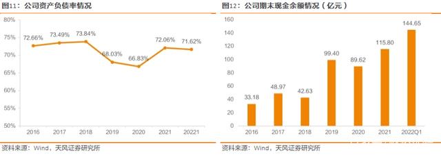 公司资产负债率维持高位,充足现金流支撑快速发展。一方面,伴随常规能源板块的稳步发展及新能源装机容量高速扩张,公司资产负债率维持高位;另一方面,2021年末公司现金余额达115.8亿元,在业绩亏损的情况下现金流仍较为充足且保持增长态势,有望支撑公司快速发展。(报告来源:远瞻智库)