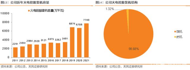 截至2021年末,公司火电控股装机容量7739.96万千瓦,其中煤机7638万千瓦,燃机101.96万千瓦;火电权益装机容量3287.62万千瓦,其中煤机3238.08万千瓦,燃机49.54万千瓦。