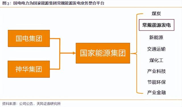 控股股东实力雄厚,常规能源资产优先选择权保证公司稳健发展。一方面,公司控股股东国家能源集团由国电集团与神华集团联合重组而成,拥有煤炭、常规能源发电、新能源、交通运输、煤化工、产业科技、节能环保、产业金融等八大产业板块,是全球最大的煤炭生产公司、火力发电公司、风力发电公司和煤制油煤化工公司,实力雄厚;另一方面,国家能源集团明确将国电电力作为其常规能源发电业务整合平台,逐步将旗下非上市常规能源发电业务资产注入国电电力。同时,对于集团未来新增的常规能源发电业务,授予国电电力优先选择权,由其负责项目的整合、开发、建设及后续管理。