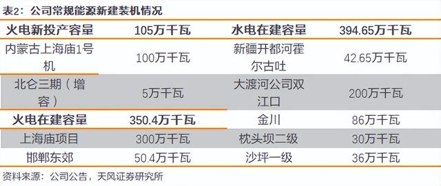 增量方面,2021年公司新投产火电装机容量为105万千瓦,包括内蒙古上海庙1号机100万千瓦、北仑三期增容5万千瓦;在建火电机组350.4万千瓦,主要为上海庙项目3x100万千瓦、邯郸东郊50.4万千瓦;在建水电机组394.65万千瓦,主要为新疆开都河霍尔古吐42.65万千瓦、大渡河公司双江口200万千瓦、金川86万千瓦,枕头坝二级30万千瓦、沙坪一级36万千瓦。