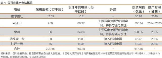 增发电量方面,在建电站全部投产后预计能够带来直接增发电量共计163.41亿千瓦时;此外,双江口电站具备年调节能力,投产后预计可增加枯水期发电量66亿千瓦时,届时公司水电的年发电量有望从目前的约600亿千瓦时增长至约818.2亿千瓦时。