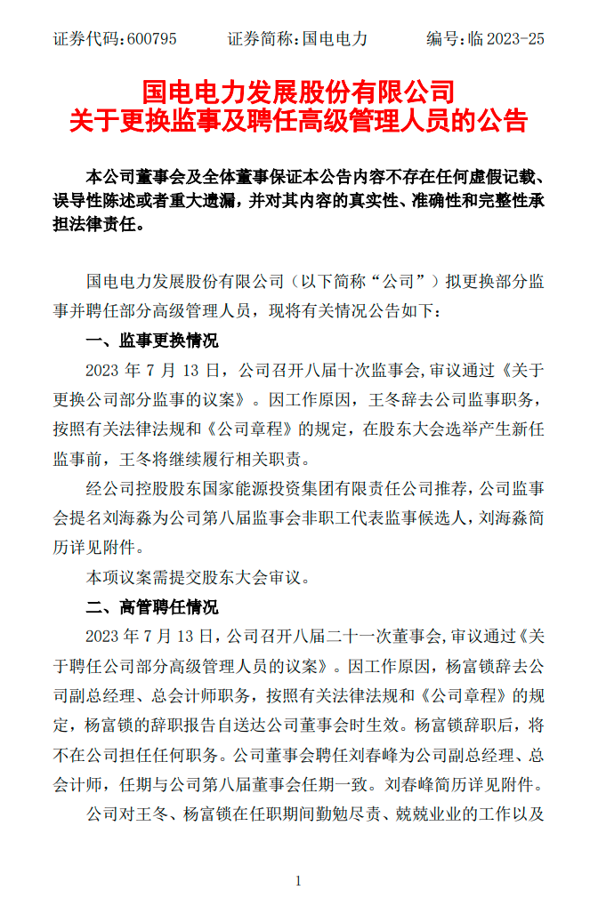 近日,国电电力发展股份有限公司宣布,因工作原因,杨富锁辞去公司副总经理、总会计师职务。其辞职后,将不在公司担任任何职务。