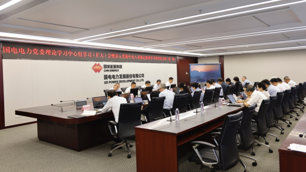 6月10日,国电电力举办党委理论学习中心组学习(扩大)会暨深入贯彻中央八项规定精神学习教育第二期读书班,学习《党的十八大以来深入贯彻中央八项规定精神的成效和经验》《八项规定改变中国》,深刻领会以习近平同志为核心的党中央制定和落实中央八项规定的战略考量,紧扣学习主题进行专题研讨。公司总经理、党委副书记赵世斌主持读书班并作总结讲话,公司党委委员张国林、刘春峰、高宁、朱江涛参加学习。