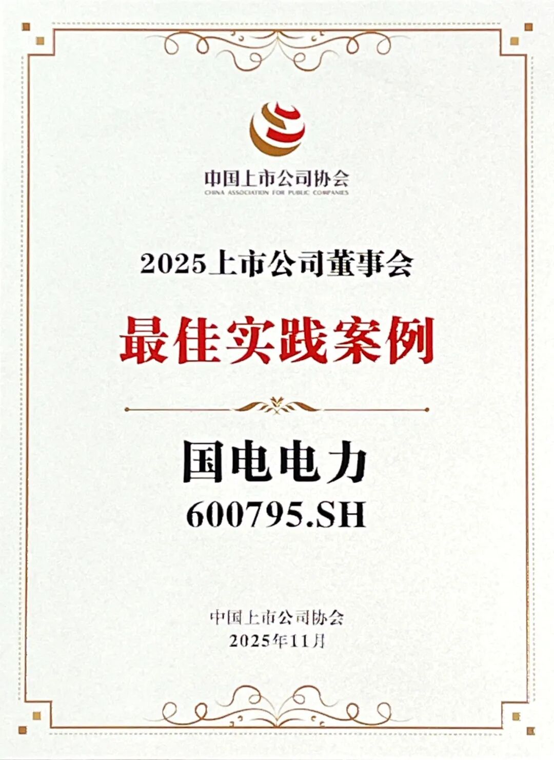 11月18日,从中国上市公司协会获悉,国电电力凭借专业规范高效的董事会运作,成功入选“2025上市公司董事会最佳实践案例”榜单。