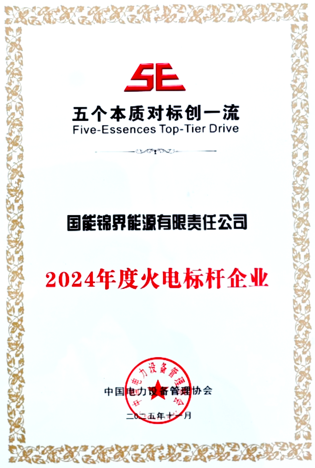 国能锦界公司成功蝉联2023年、2024年度火电5E对标标杆企业荣誉,以连续两年的卓越表现,为火电行业转型升级与国家“双碳”战略实施提供了重要实践范例。
