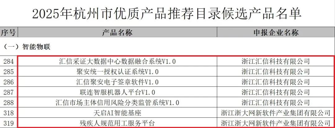 近日,杭州市经济和信息化局(杭州市数字经济局)公布了《2025年杭州市优质产品推荐目录》,浙大网新以卓越的技术实力再获权威认可,公司旗下天启AI智能基座、残疾人规范用工服务平台、汇信采证大数据中心数据融合系统V1.0、聚安统一授权认证系统V1.0等共计7项产品荣登智能物联系列榜单。