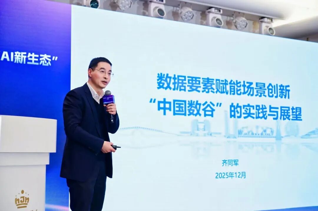 杭州市数据局党组成员、副局长齐同军介绍了杭州市多项国家数据局试点示范项目,并通过实践案例展示了杭州以“中国数谷”为核心,在数据基础制度建设、数据基础设施建设、数据高水平开发利用、推进数据产业发展四大方向的重点探索。