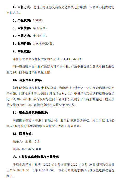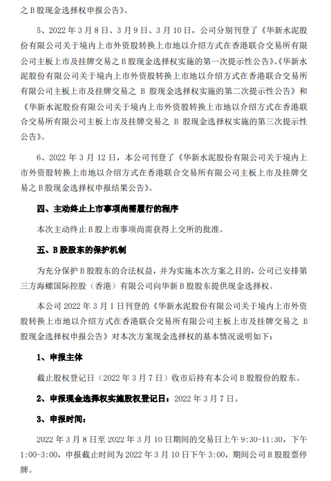 华新水泥(600801.SH)发布公告,公司已于2022年3月14日向上海证券交易所提交终止B股上市的申请。