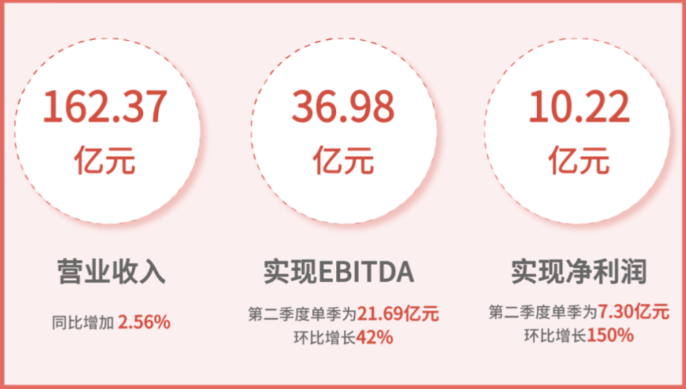 上半年,公司实现营业收入162.37亿元,同比增长2.56%;受国内水泥及商品熟料价格和销量同比下降影响,实现归属于母公司股东的净利润7.31亿元,同比下降38.74%;实现水泥及商品熟料销量2848.44万吨,同比下滑4.9%;骨料销售7152.61万吨,同比增长41.60%;混凝土销售1470.05万方,同比增长34.25%。