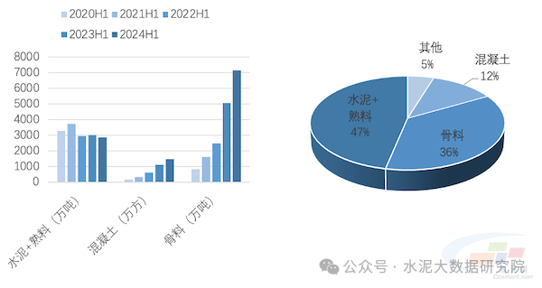 图4、5:2024年上半年华新水泥各板块业务销量和毛利润占比
