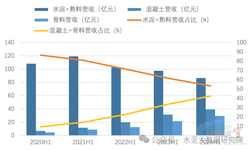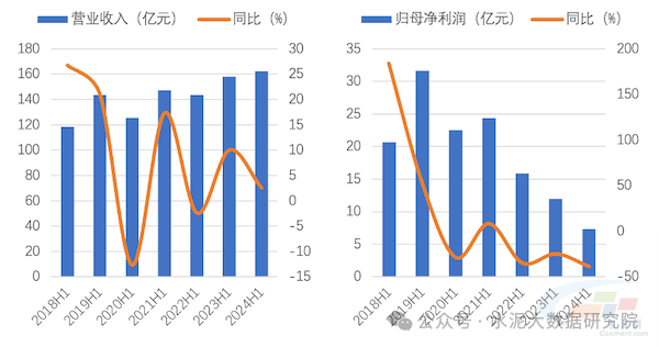 2024年上半年,受国内房地产持续遇冷和基建增速放缓双重影响,国内水泥需求持续减少,华新水泥业务营收86.66亿元,同比下降11.25%。与此同时,非水泥混凝土和骨料业务业绩强劲,混凝土营收39.43亿元,同比增长24.21%,骨料营收29.62亿元,同比增长36.96%。非水泥业务营收增长有效对冲水泥主业颓势影响,上半年总营收不减反增。