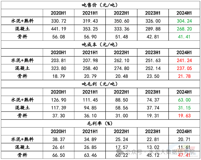 2024年上半年,国内建材行业颓势,价格因需求下滑偏弱运行,华新水泥和非水泥业务产品销售价格均出现了下滑现象,水泥产品售价较上年同期下滑21.76元/吨至304.24元/吨,混凝土产品价格下降21.68元/方至268.20元/方,骨料产品均价下滑1.40元/吨至41.41元/吨。