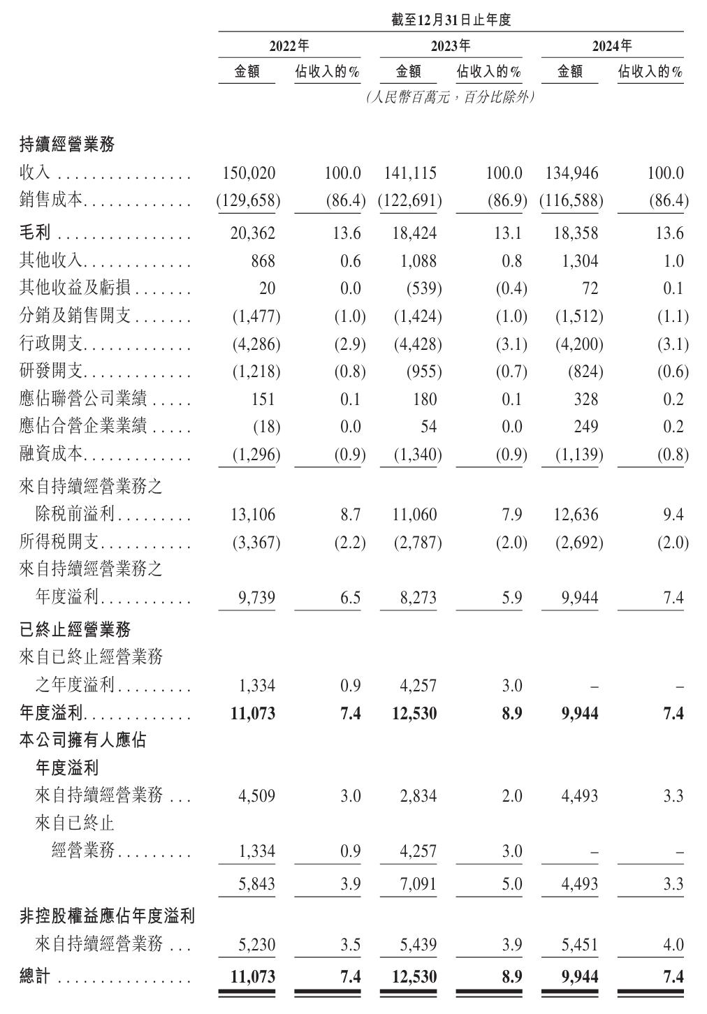 招股书显示,新奥股份2022年、2023年、2024年营收分别为1500亿元、1411亿元、1349.46亿元;毛利分别为203.62亿元、184.24亿元、183.58亿元;毛利率分别为13.6%、13.1%、13.6%。