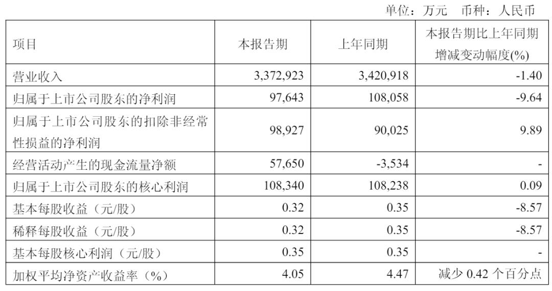 新奥股份2025年第一季度营收为337.29亿元,较上年同期的342.1亿元下降1.4%;净利为9.76亿元,较上年同期的10.8亿元下降9.64%;扣非后净利为9.89亿元,较上年同期的9亿元增长9.89%。