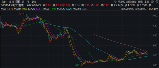 二级市场方面,*ST鹏博在去年11月中上旬还被爆炒过一轮,股价从1.4元左右直冲到2.2元左右。随后经停牌自查,公告称不存在筹划涉及公司的重大资产重组、股份发行、收购等应披露而未披露的重大信息,股价随之走弱,至节前已回落至1.85元。