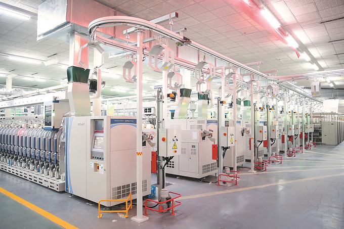 纺织、农机与专用车是悦达投资的传统产业板块。经过数智化改造的纺织工厂内,10万锭绿色环保智能化纺纱设备一刻不停地运转,整个厂区纤尘不染、机器人来回穿梭。围绕绿色能源战略,悦达纺织公司也加速推进“绿色、低碳、再生、健康、功能”产品的生产。数据显示,去年新开发再生类纱线产品246个,实现有机棉、可再生、生物基等绿色纱线产品销售4542.9吨,同比增长5%。