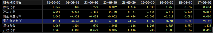光伏电站与储能电站均属于典型的重资产行业,其后续发展对资金投入有极高的需求。悦达投资当前的资金实力能否支撑旗下新能源子公司的大规模扩张,成为市场关注的问题。2023年至2025年连续三期半年报显示,悦达投资的资产负债率分别为41.15%、44.48%、49.11%,已一路走高至2013年同期以来的高点。