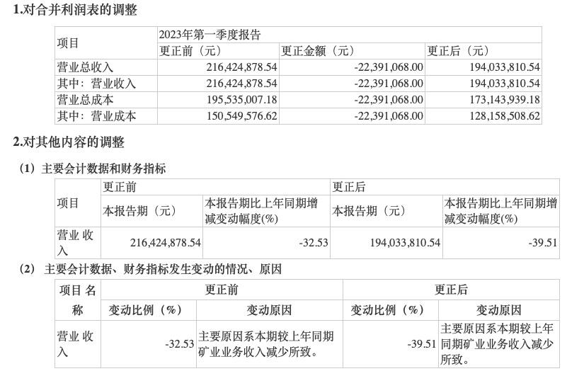 8月18日,济南高新(000628)发布公告,对相关差错事项进行更正,涉及2023年第一季度财务报表。公告称,基于谨慎性原则,公司将2023年一季度黄金贸易业务收入确认方式由“总额法”调整为“净额法”,本次会计差错更正影响公司2023年第一季度的营业收入和营业成本,不影响净利润,不影响资产负债表及现金流量表的列报。本次会计差错更正仅影响2023年第一季度报告,不影响公司前期定期报告相关财务数据和财务指标。更正前,2023年第一季度营业总收入为2.16亿元,同比下降32.53%;更正后为1.94亿元,同比下降39.51%。