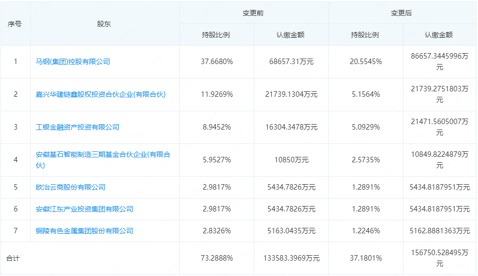 变更前:马钢(集团)控股有限公司,变更前持股37.6680%