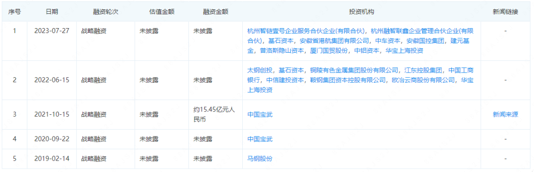 7月27日,欧冶链金进行战略融资,投资机构包括杭州智链壹号企业服务合伙企业(有限合伙),杭州融智联鑫企业管理合伙企业(有限合伙),基石资本等10余家。这已是欧冶链金继2019年以来第5次战略融资,将进一步推动企业实现战略发展目标和计划。