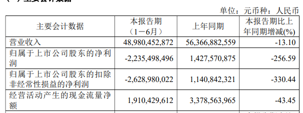 马钢股份公布2023半年度报告,报告期内公司实现营业收入489.80亿元,同比下降13.10%;归属于上市公司股东净亏损22.35亿元。
