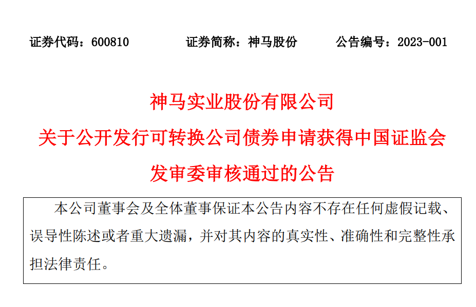 1月16日,神马股份公告,证监会第十八届发审委审核通过其公开发行可转换公司债券申请。