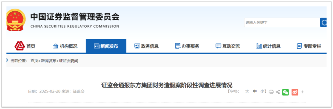证监会通报东方集团财务造假案阶段性调查进展情况
