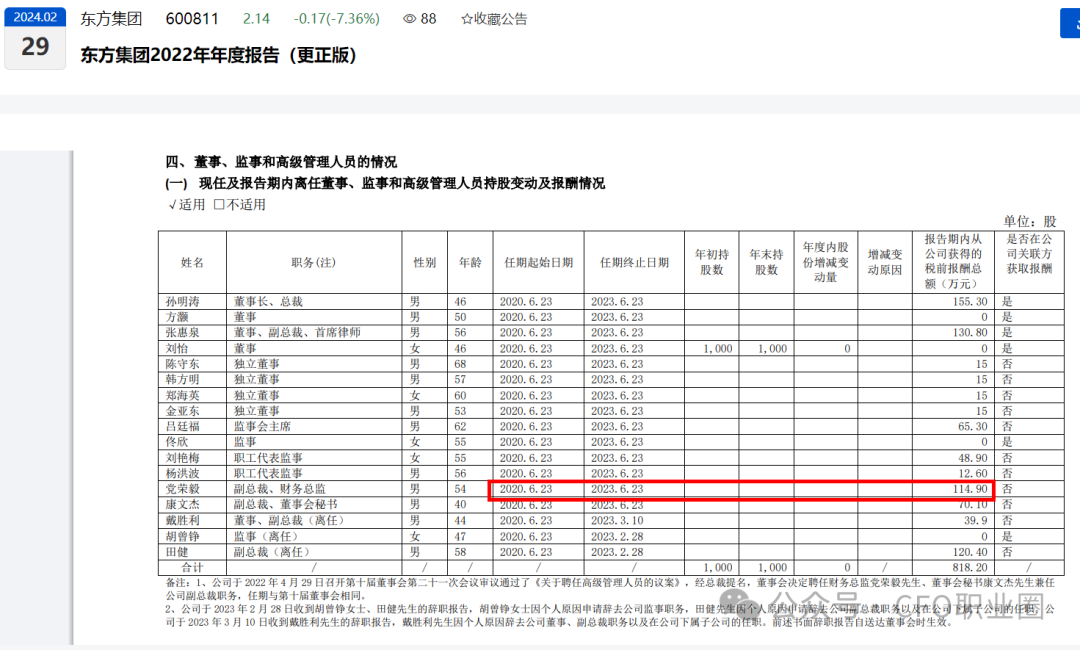 值得注意的是东方集团新任财务总监刚刚上任2个月,而原财务总监田春磊在公司被立案后辞任。田春磊在任时间也仅4个月。