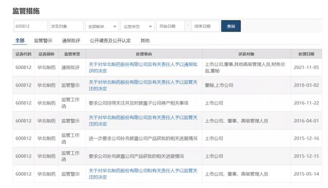 屋漏偏逢连夜雨。今年11月5日,因超限存款、公司有关带息负债的信息披露前后不一致等,华北制药及有关责任人被上海证券交易所通报批评。11月12日,同因华北制药超限存款未及时履行关联交易决策程序和信息披露义务,河北证监局决定对该公司采取责令改正的行政监管措施。