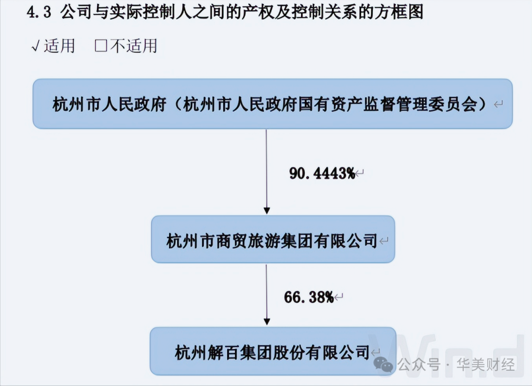 杭州解百的股权高度集中,公司控股股东是杭州商贸旅游集团,持股超过66%,实际控制人则是杭州市国资委,为市属重点上市国企。