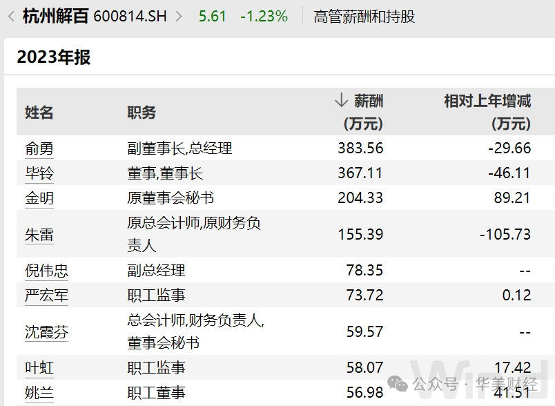 2021年、2022年,俞勇的薪酬分别为515万元、413万元,同样并列第一。这说明,杭州解百虽然是一家国企,但是对高层薪酬也是相当到位的。