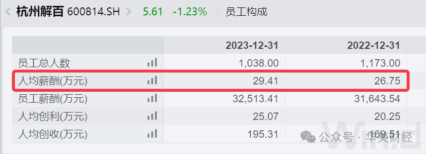 2023年末,杭州解百职工总数1038人,去年人均创利25.1万元,人均薪酬29.4万元,比2022年增加约2.7万元,虽然比不上网易、阿里这样的互联网大厂,但在国企中还是相当有竞争优势的。