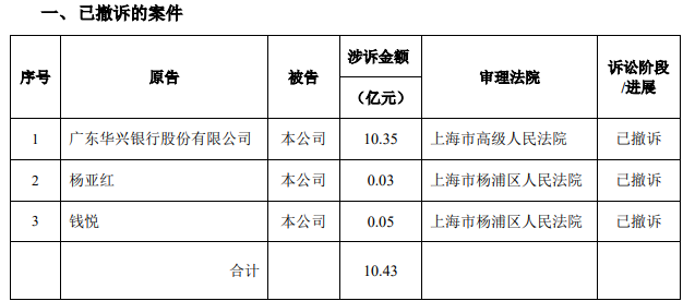 ST安信7月8日公告,涉案合计10.43亿元的3宗案件原告已撤诉。1宗建设工程合同纠纷案件执行中,法院责令公司履行下列义务:限三日内主动履行民事判决书确定的义务,并应承担迟延履行利息;执行标的679.770272万元,执行费6.1389万元,合计约685.91万元。涉案8.82亿元的2宗案件已上诉。