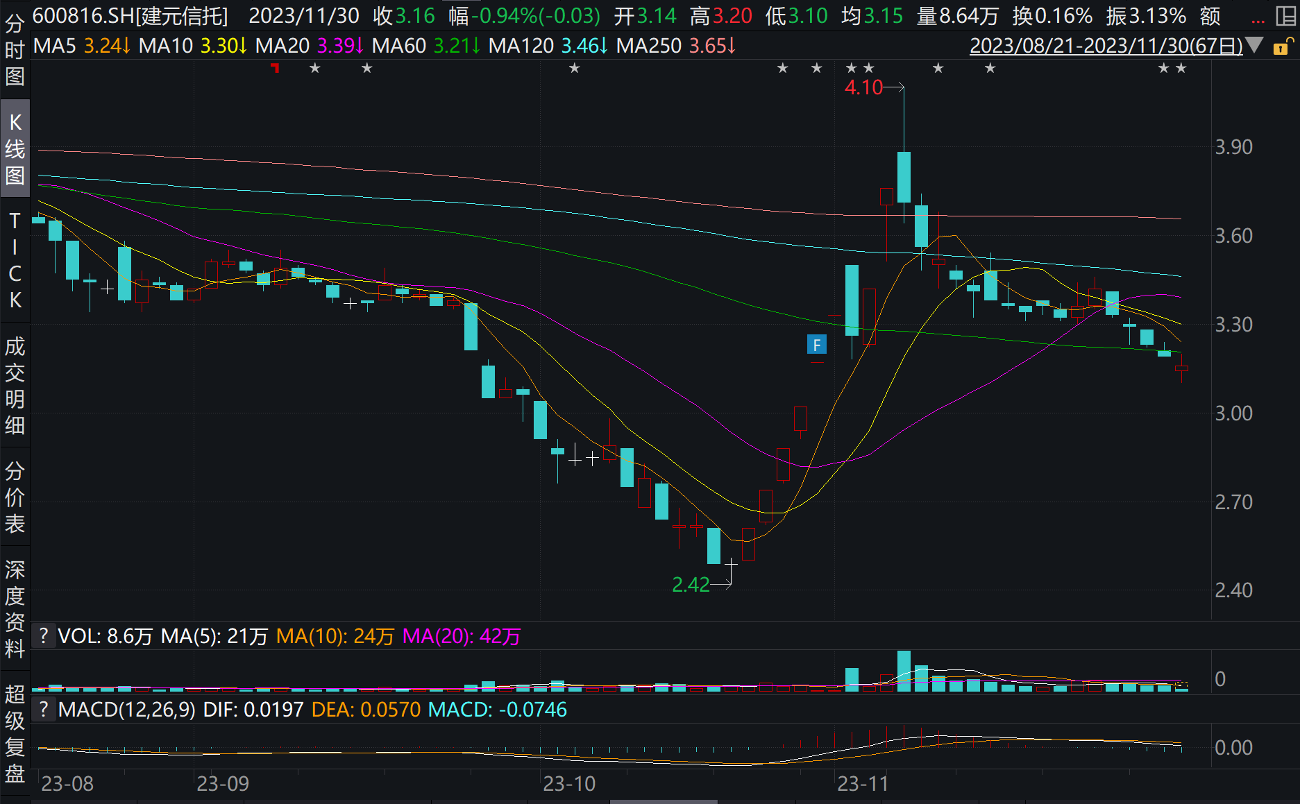 记者注意到,2023年11月3日,上交所同意撤销对建元信托股票实施的其他风险警示。11月17日,正式撤销其他风险警示后,建元信托A股简称由“ST建元”变更为“建元信托”,公司股票交易的日涨跌幅限制由5%变更为10%。