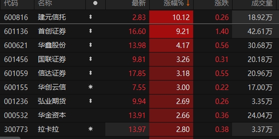 1月23日早盘,申万一级行业板块中,非银金融板块表现强势。截至10时14分,建元信托涨停。首创证券涨超9%,华鑫股份涨逾4%,国联证券、信达证券等跟涨。
