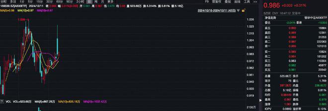相关ETF方面,A500ETF(159339)截至发稿涨0.31%,成交额5.16亿元,换手率5.31%,早盘交投活跃,溢折率0.10%,盘中频现溢价交易。