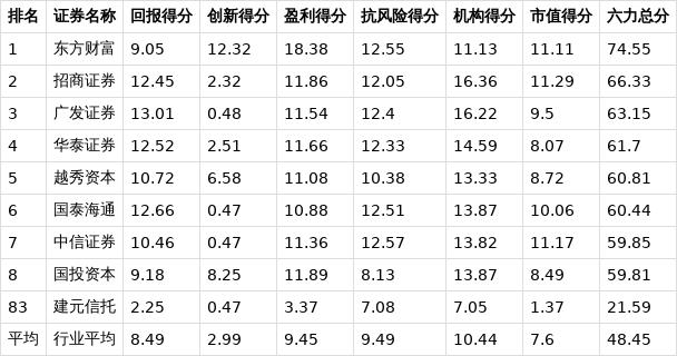 从所属行业角度来看,在申万一级非银金融行业的83家上市公司中,建元信托位列行业第82位,行业平均分为48.45分。