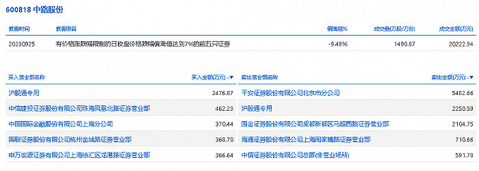 具体来看,平安证券北京市分公司、沪股通专用分别卖出5482.66万元、2250.59万元;沪股通专用、中信建投证券珠海凤凰北路证券营业部分别买入2476.87万元、462.23万元。