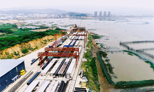 G228宁海西店至桃源段公路工程PPP项目:正在进行东岙大桥梁板预制架设施工。