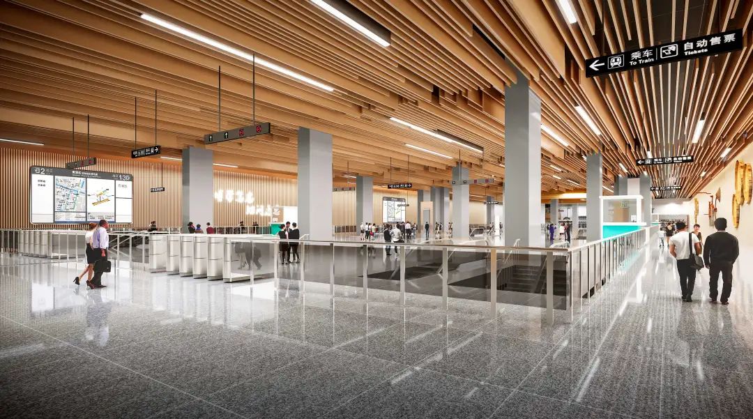 车站与外青松公路隧道同步建设,地下一层为外青松公路隧道空间,地下二、三层分别为车站站厅层和站台层。